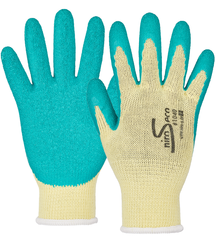 NIRO-S eco #1040: Grobstrickhandschuh Polyester-Baumwolle mit schrumpfgerauter Latexbeschichtung (65%Polyester, 35% Baumwolle): Die schrumpfgeraute Latexbeschichtung sorgt für einen ausgezeichneten Grip, insbesondere in nassen und rutschigen Umgebungen. Dies ist ideal für Arbeiten im Freien. Das dickere Trägermaterial macht den Handschuh robust und widerstandsfähig.