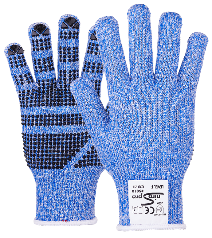 NIRO-S pro #5010: Nach EN388:2016 höchster Schnittschutzlevel F. Vinylnoppen auf den Handinnenflächen sorgen für erhöhte Griffsicherheit. Für grobe Arbeiten mit hohem Gefahrenpotential ist dieser Handschuh sehr gut geeignet.